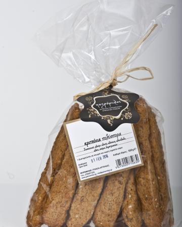 Συστατικά: αλεύρι ολικής αλέσεως, ελαιόλαδο, αλάτι, σπόροι δημητριακών