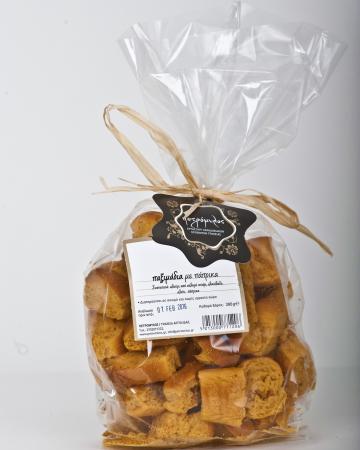 Συστατικά: αλεύρι από σκληρό σιτάρι, ελαιόλαδο, αλάτι, πάπρικα