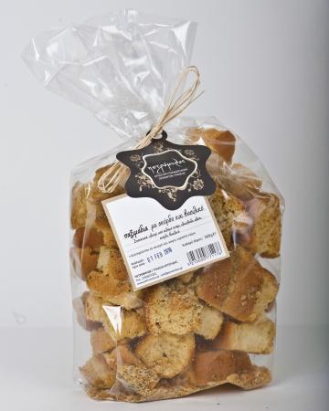 Συστατικά: αλεύρι από σκληρό σιτάρι, ελαιόλαδο, αλάτι, σησάμι