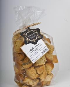 Συστατικά: αλεύρι από σκληρό σιτάρι, ελαιόλαδο, αλάτι, σκόρδο, βασιλικό